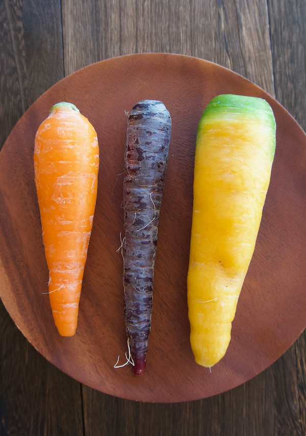 以前宅配で届いた野菜の写真なのですがほぼ同じラインナップで 最近近所の直売所で買った野菜↓ 通常使うオレンジの人参の他に紫や黄色の人参が入っているセッ...