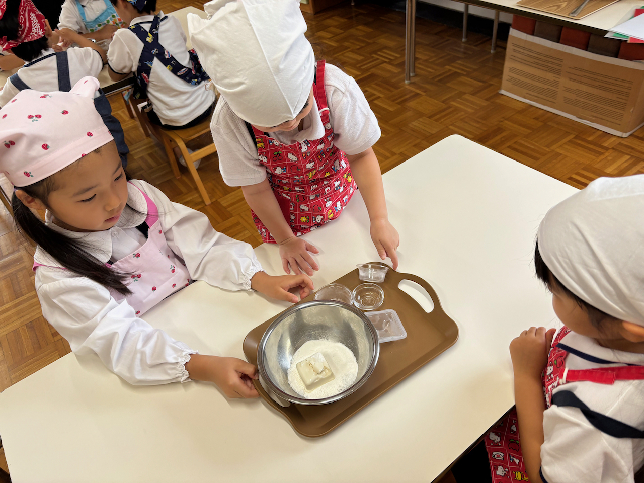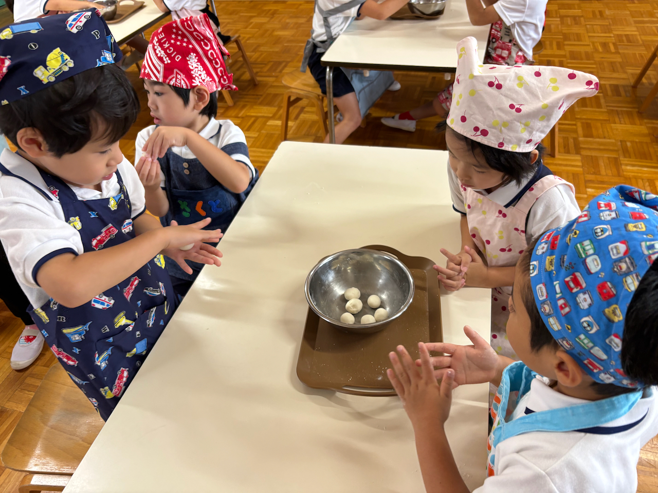 板橋明星幼稚園さま年長さん食育レッスン「月見団子づくり」