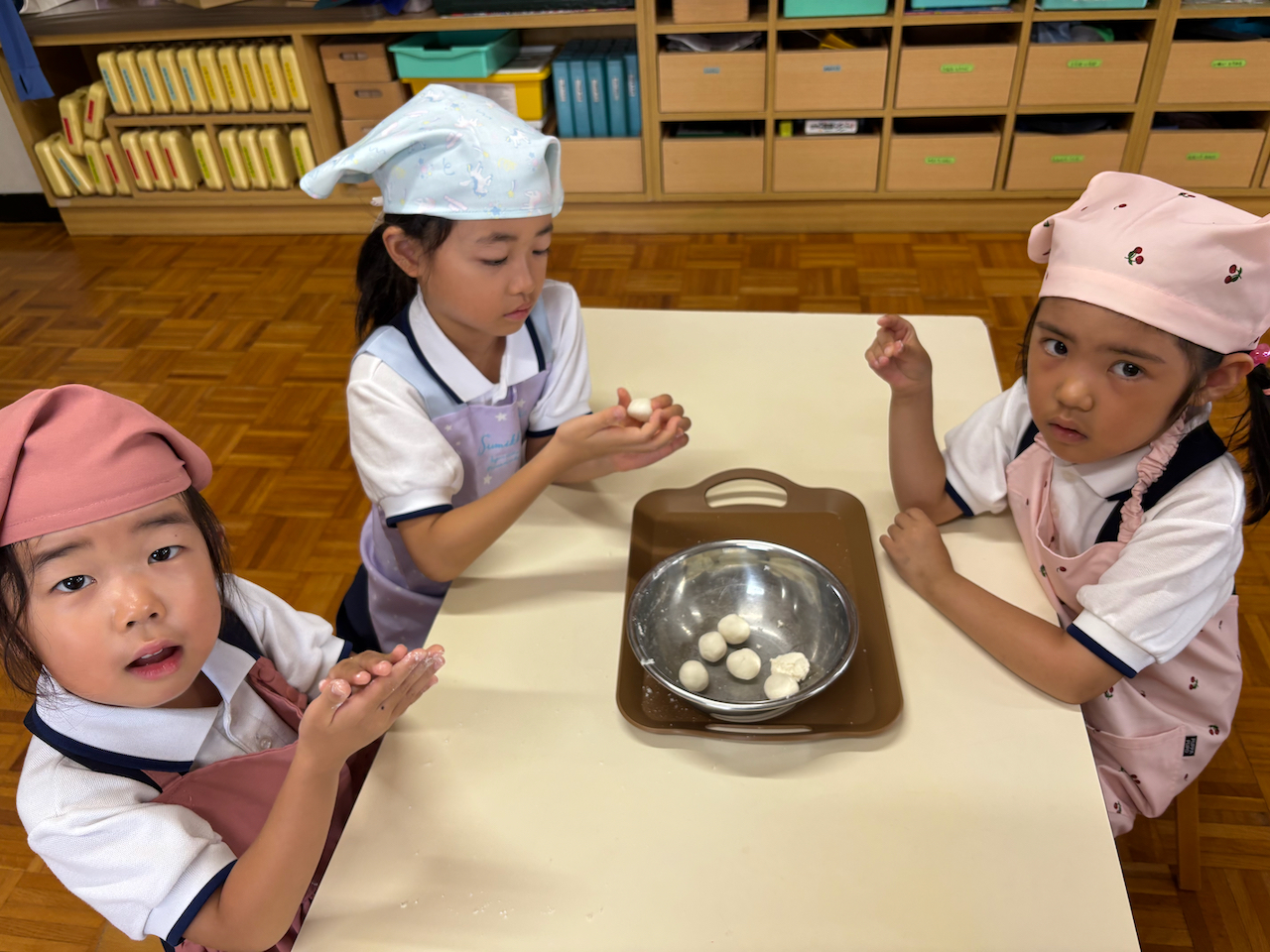 初めて作った子も多いお団子。感触にもびっくりしていました。