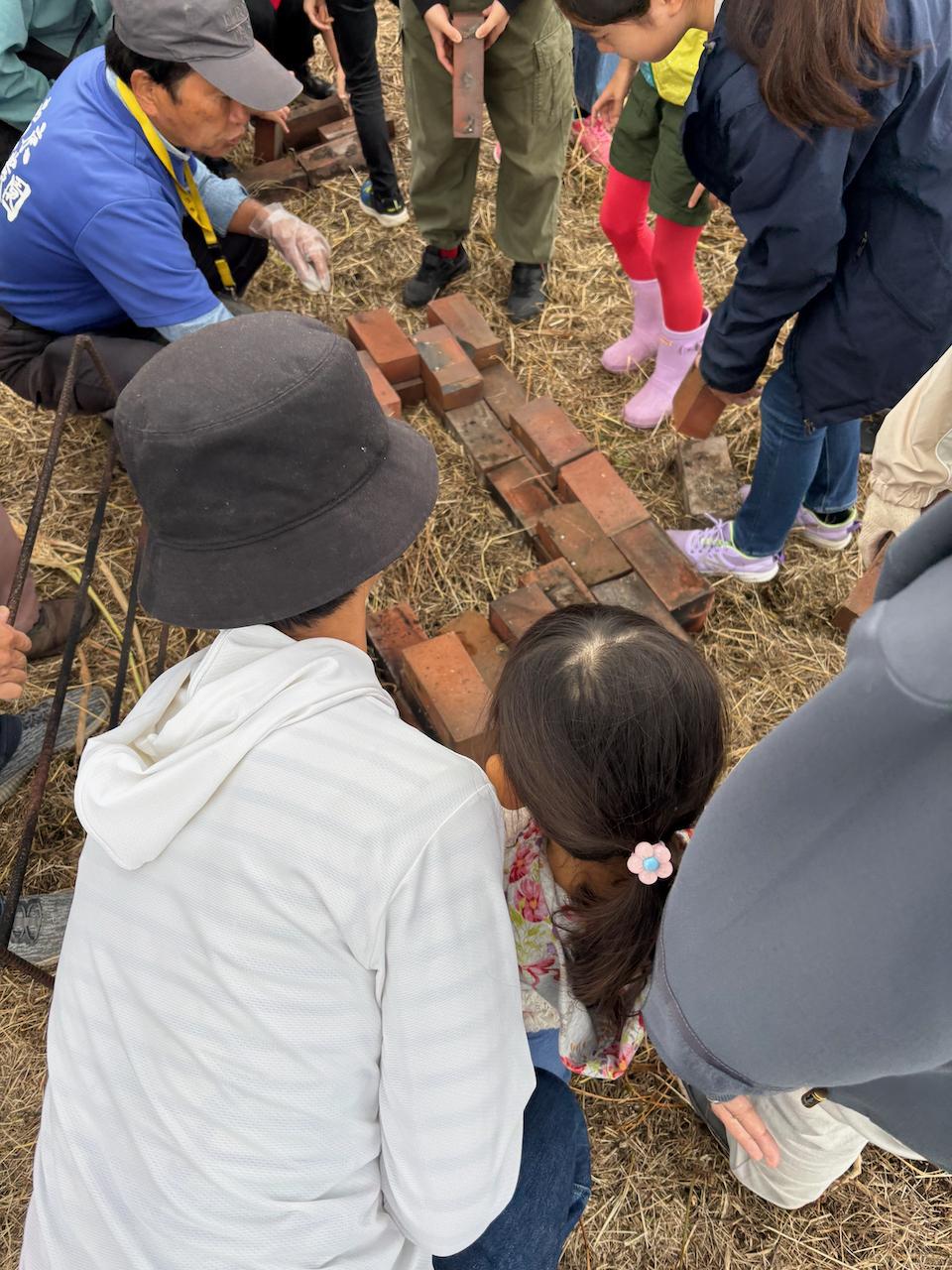 かまどづくりもレンガを運ぼうとすると虫とたくさん出会ったりと普段あまりない体験です。