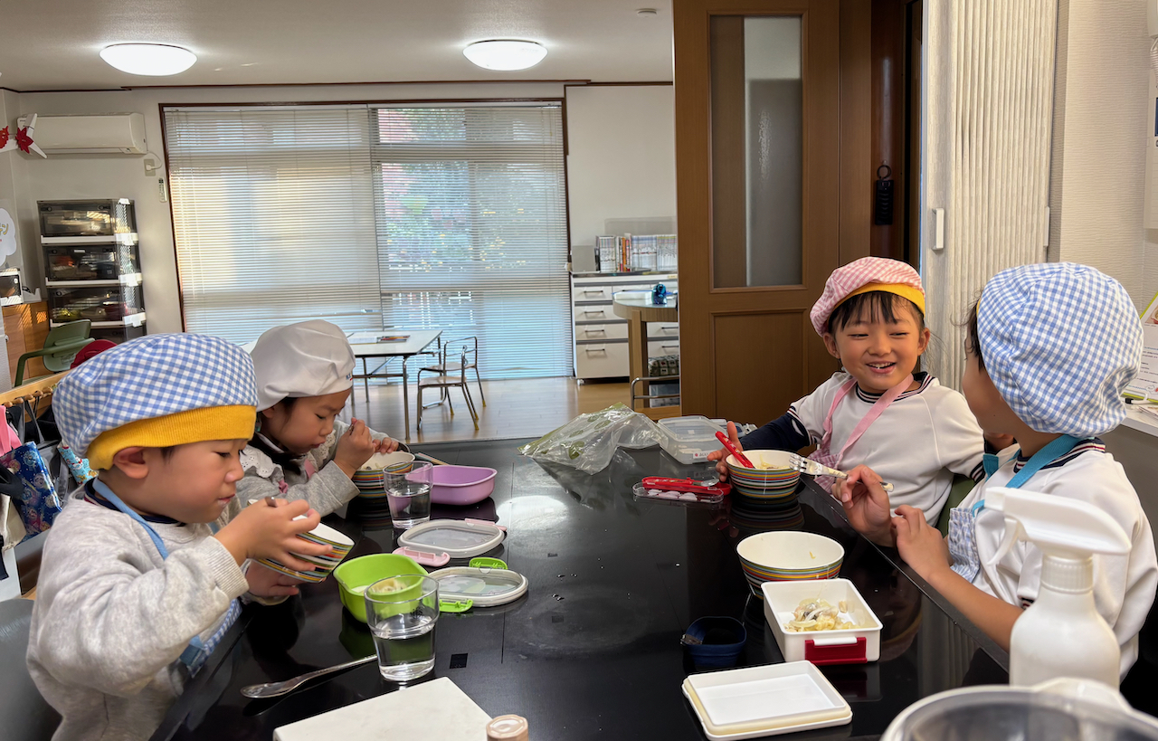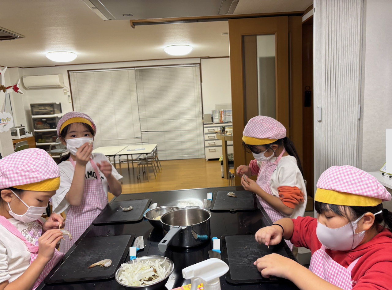 海老、しめじと板橋校では苦手な子が多い食材。でも調理は頑張りました!
