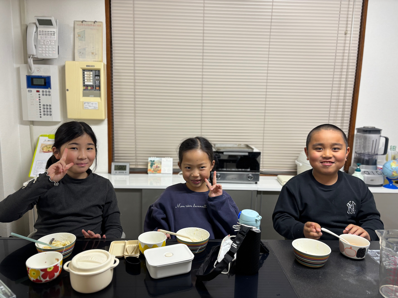 しっかり小麦粉を炒めて作ったので、幼児クラスも小学生クラスも上手にできましたよ♪