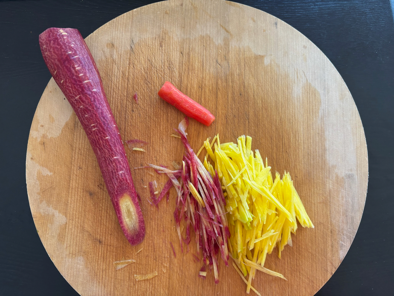 通常使うオレンジの人参の他に紫や黄色の人参が入っているセットでした。